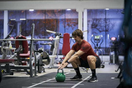 2 mancuernas o barra con peso medio para grupos musculares grandes.